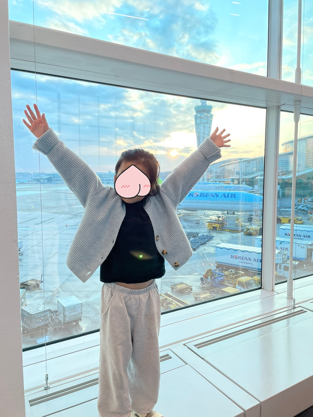 라운지에서 최대한 시간을 보내다가 탑승 시간에 맞춰 슬슬 걸어나와봅니다. 인천공항 곳곳에 있는 작은 놀이시설에서 좀 놀다가 사진도 찍고 하니 시간이 빠르게 지나갔습니다. 비행기 탈 때는 최대한 편한 옷이 좋습니다. 춥거나 더울 수 있으니 얇은 티에 가디건 걸치고 바지는 고무줄 바지가 짱입니다.
